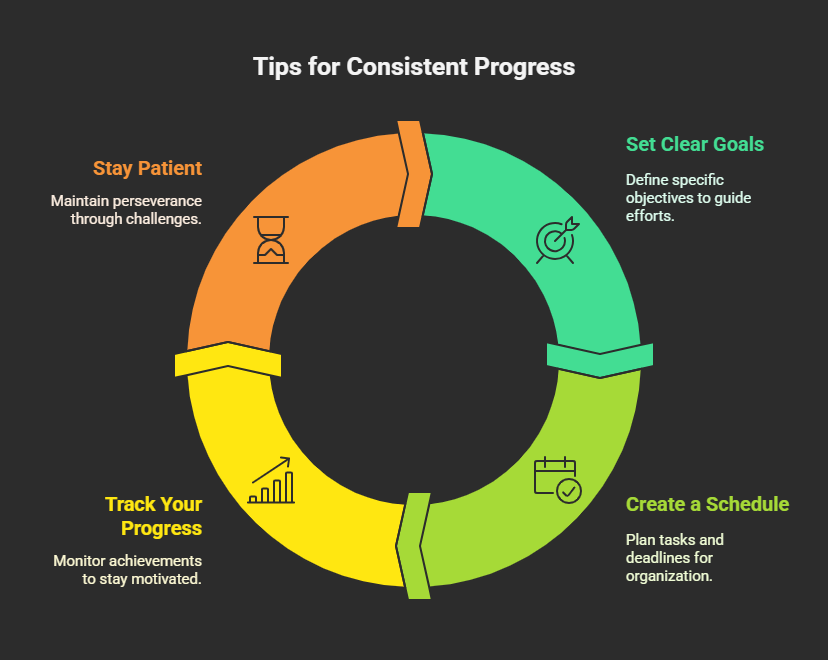 Create a Schedule: Dedicate specific times for learning and make it a non-negotiable part of your day. Consistency is key to forming lasting habits and ensuring steady progress. Use tools like Google Calendar or Trello to organize your schedule.