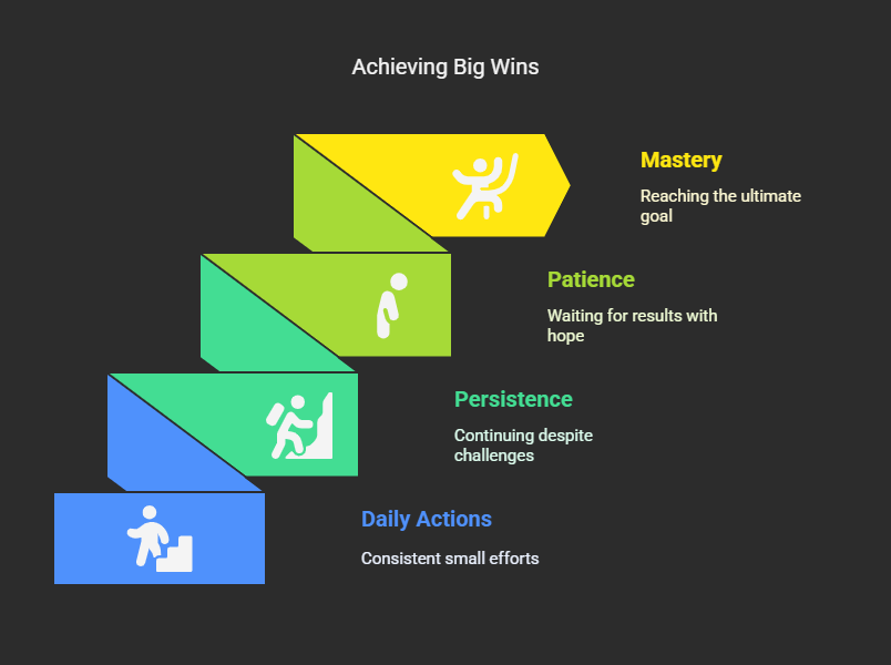 Remember, each small step you take contributes to consistent growth, leading to incremental success and ultimately transforming your life. Start today, stay consistent, and watch how these small actions compound into big wins.